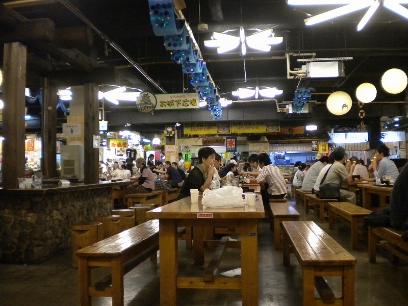 お食事はいろいろなお店からいろいろな料理を買って☟のようなテーブル席で