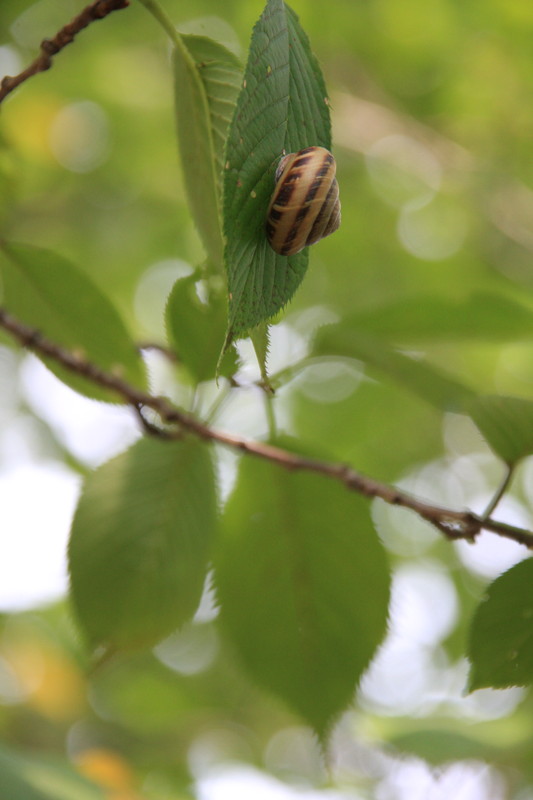 このかたつむり、こんな重そうなカラをしょってここまで登ってきたのかな?