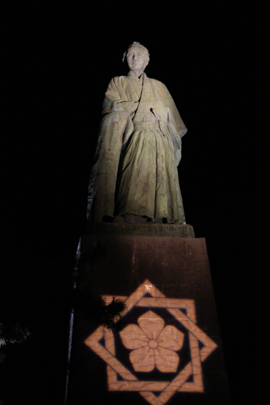 龍馬像はライトアップされ